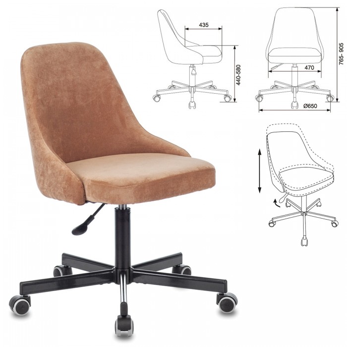 Кресло CH-340M, пятилучие металлическое, ткань, светло-коричневое, 1397884