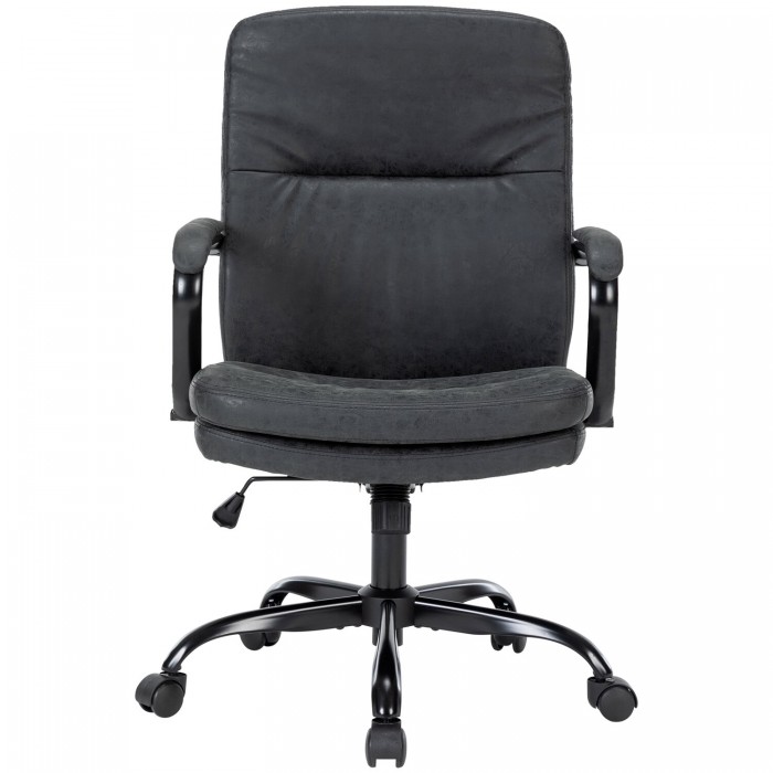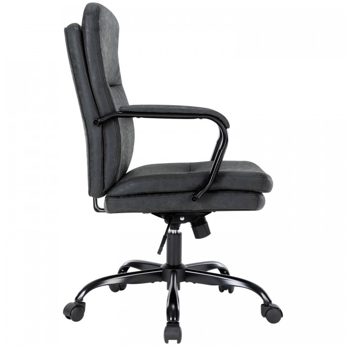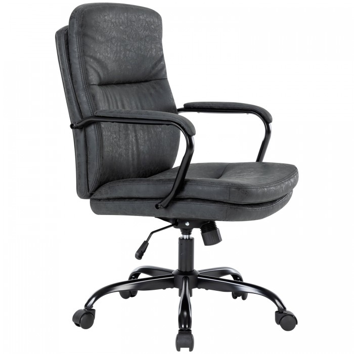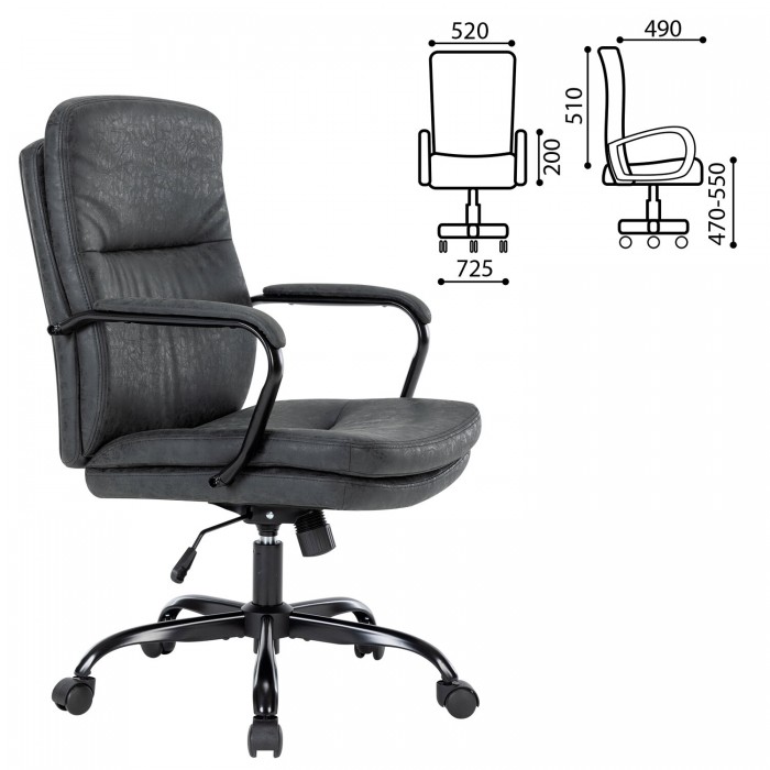 Стильное и компактное кресло в обивке из качественной экокожи. Широкое сиденье с удобной посадкой подарит комфорт во время работы, а металлические подлокотники и крестовина – надежность и презентабельность.