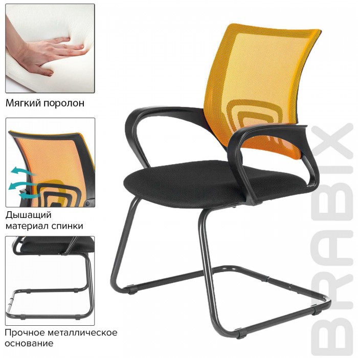 Кресло для приемных и переговорных BRABIX "Fly CF-100", оранжевое/черное, 532088