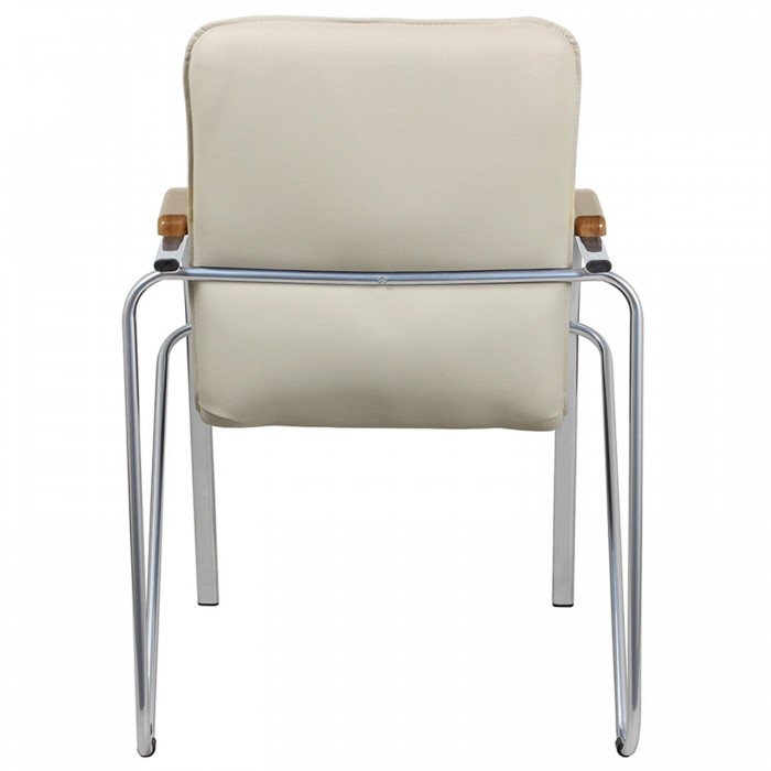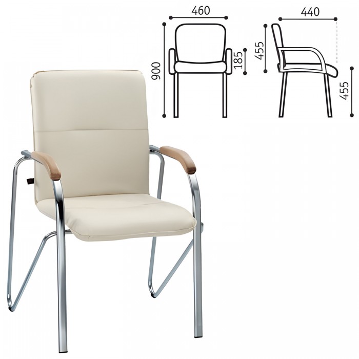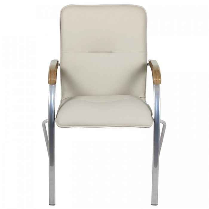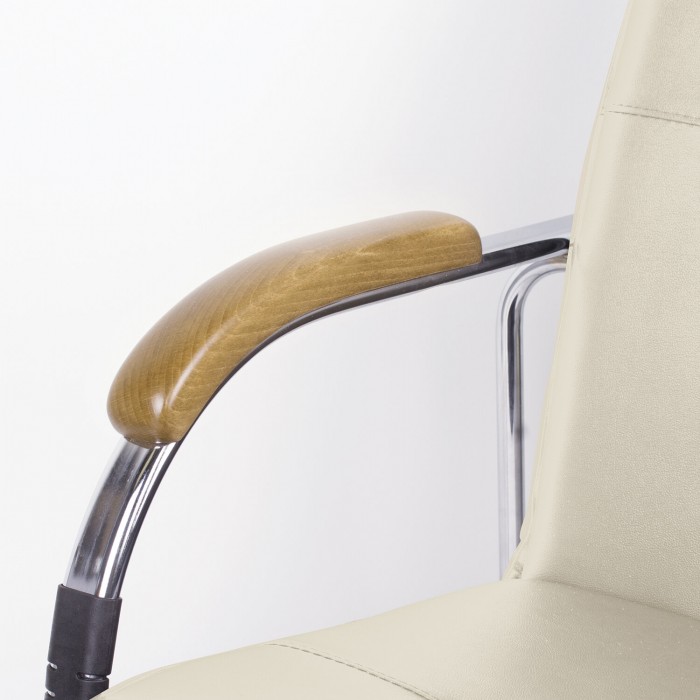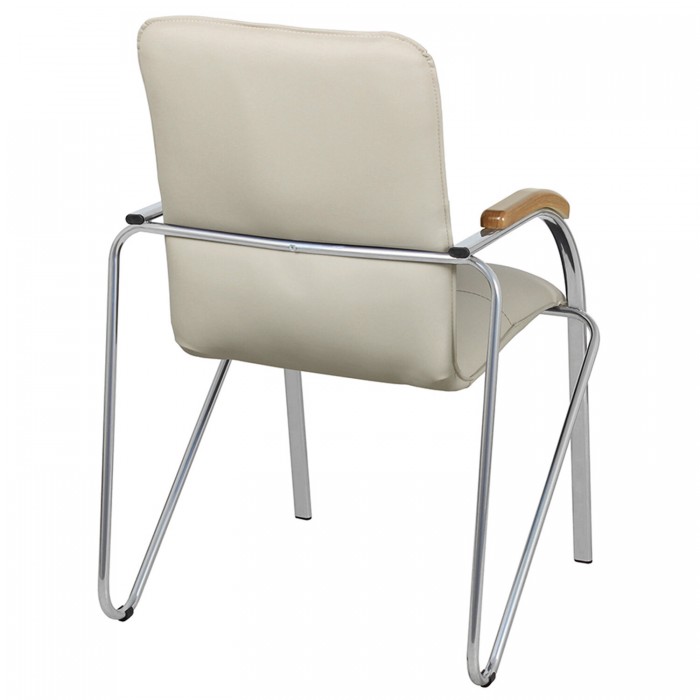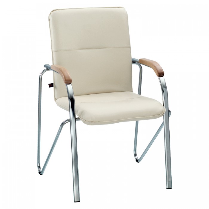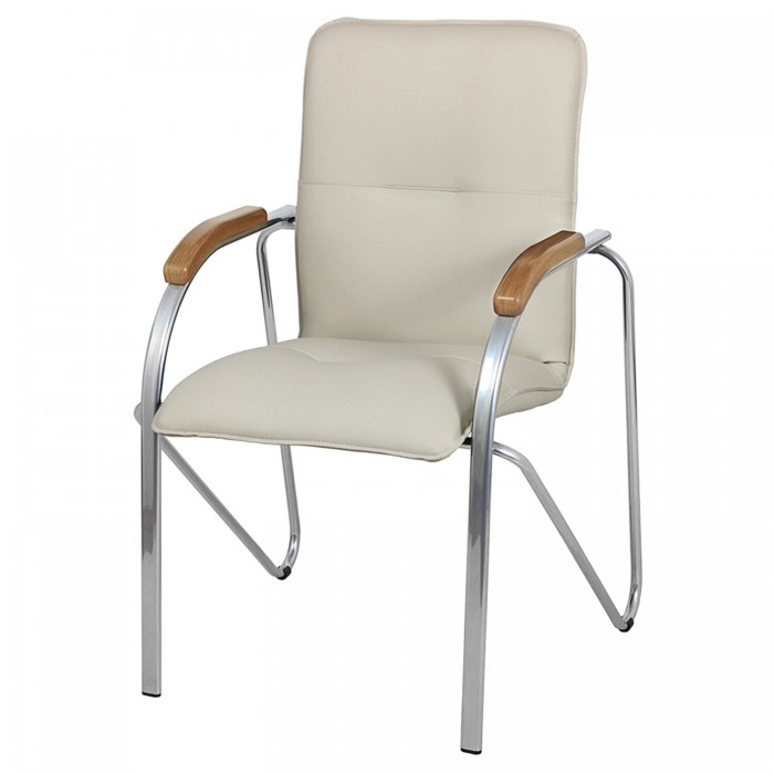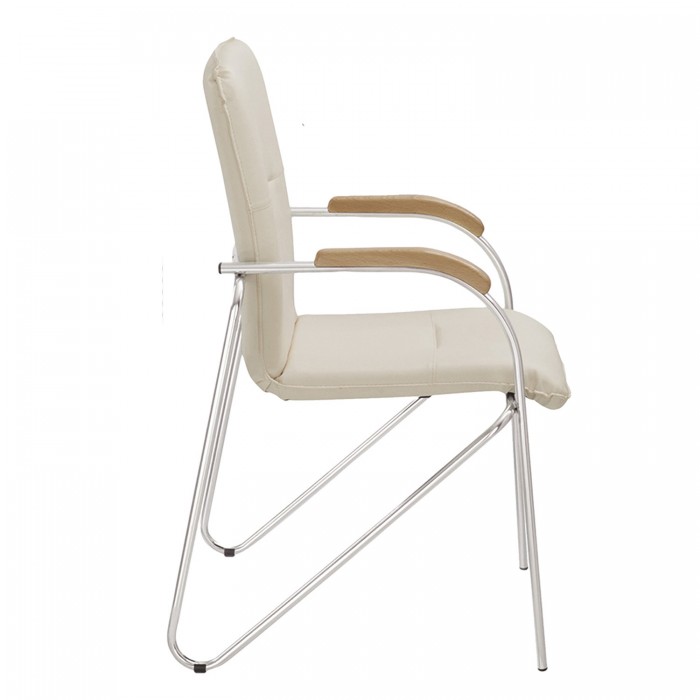 Кресло для приемных и переговорных "Samba", деревянные накладки, хромированный каркас, кожзам бежевый