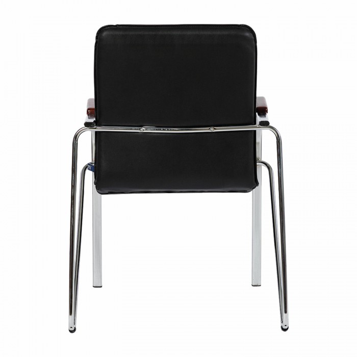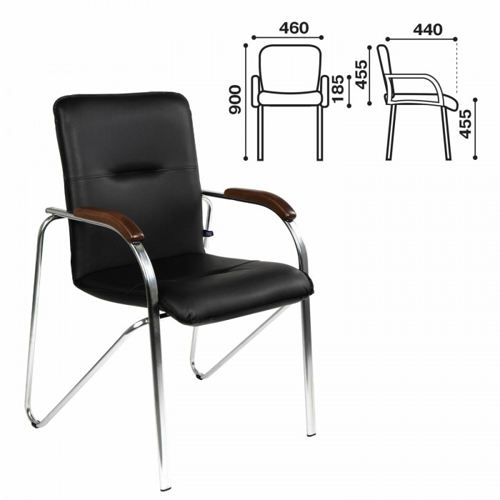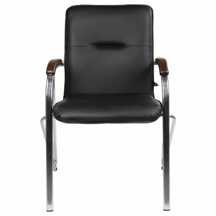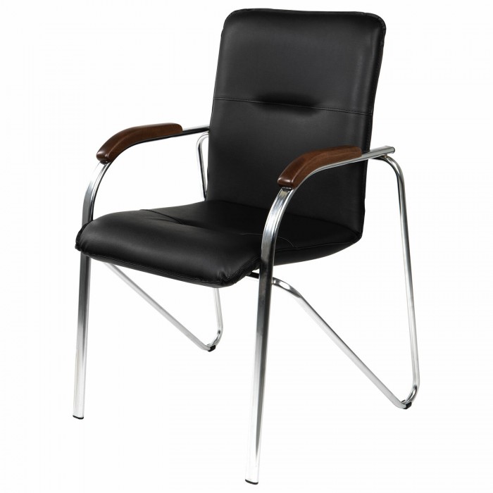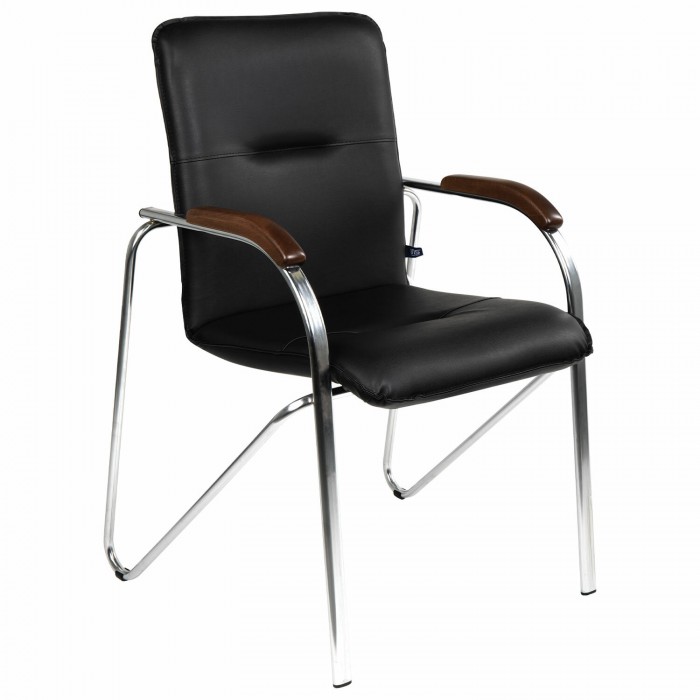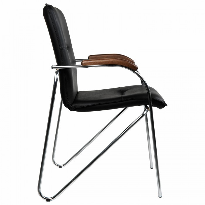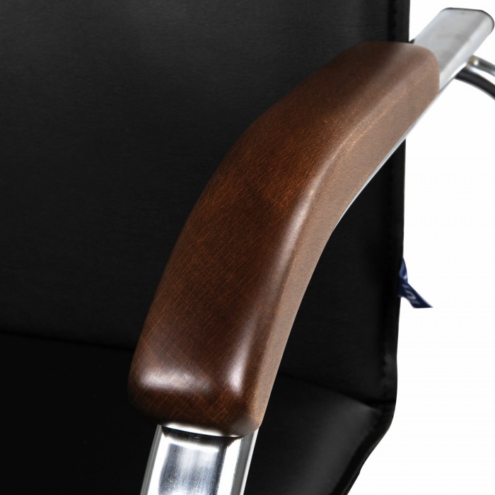 Кресло для приемных и переговорных "Samba", деревянные накладки, хромированный каркас, кожзам черный
