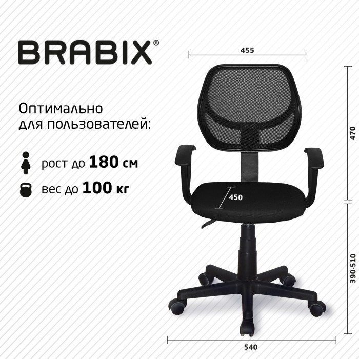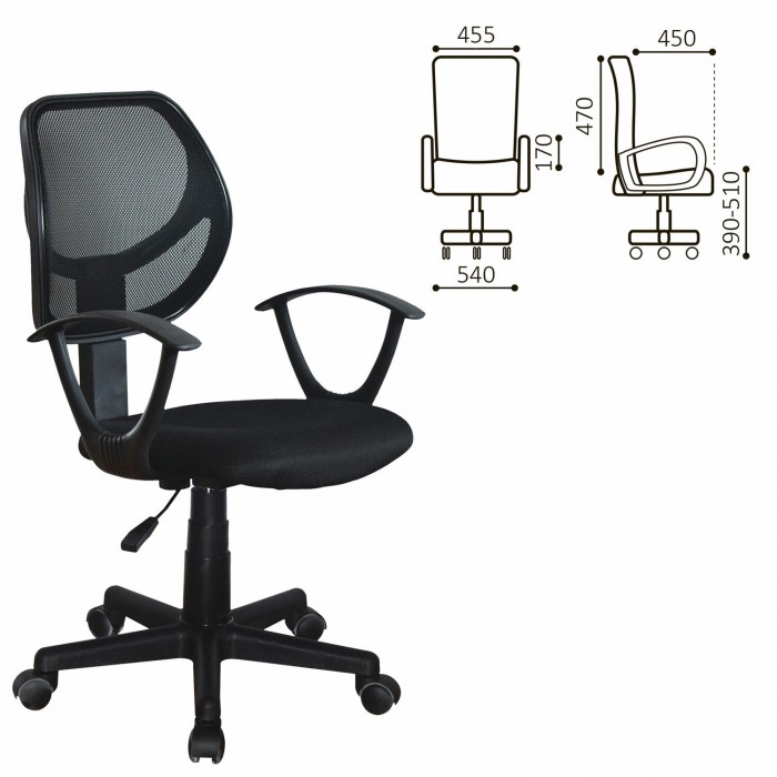 Современное и доступное операторское кресло. Легкая сетчатая спинка обеспечивает дополнительный комфорт.