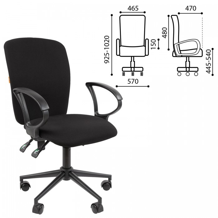 Кресло офисное Chairman CH 9801, пятилучие металл, ткань, черное, ш/к 57852, 7150934