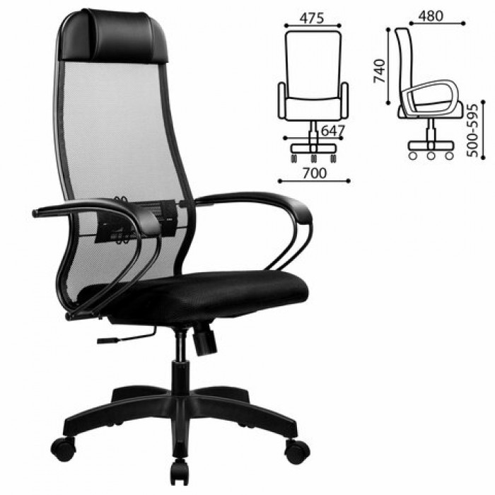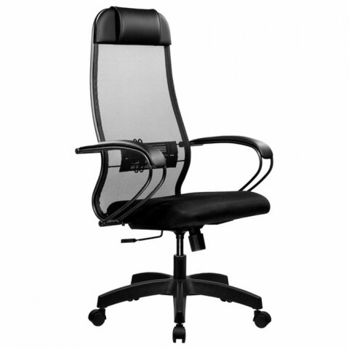 Кресло офисное МЕТТА "К-11", пластик, ткань-сетка, сиденье мягкое, черное