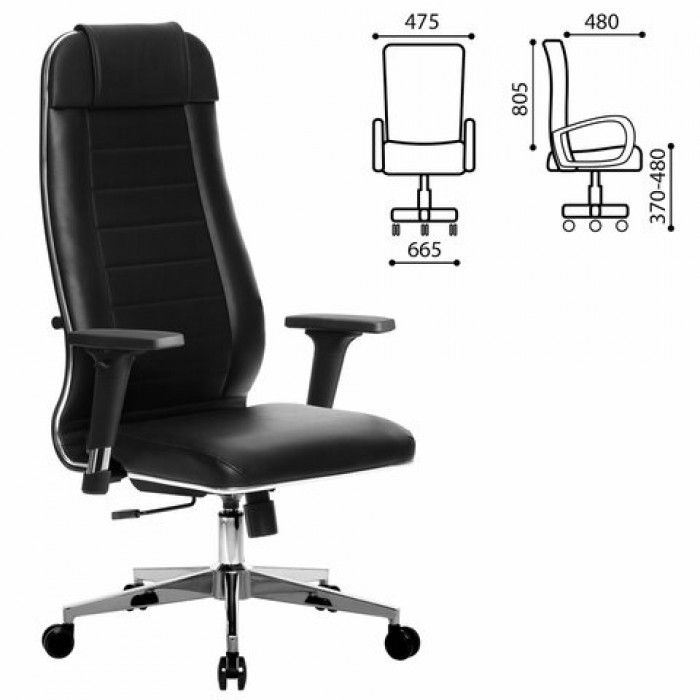 Кресло офисное МЕТТА "К-29-2D" хром, экокожа, сиденье и спинка мягкие, черное