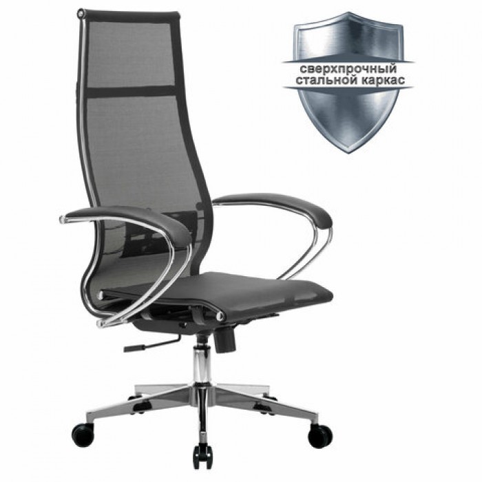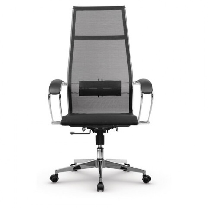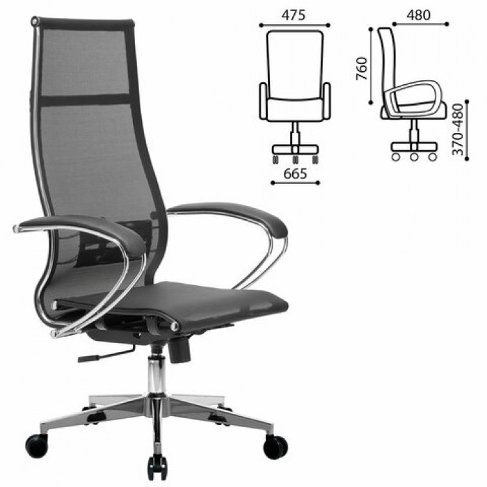 Кресло офисное МЕТТА "К-7" хром, прочная сетка, сиденье и спинка регулируемые, черное