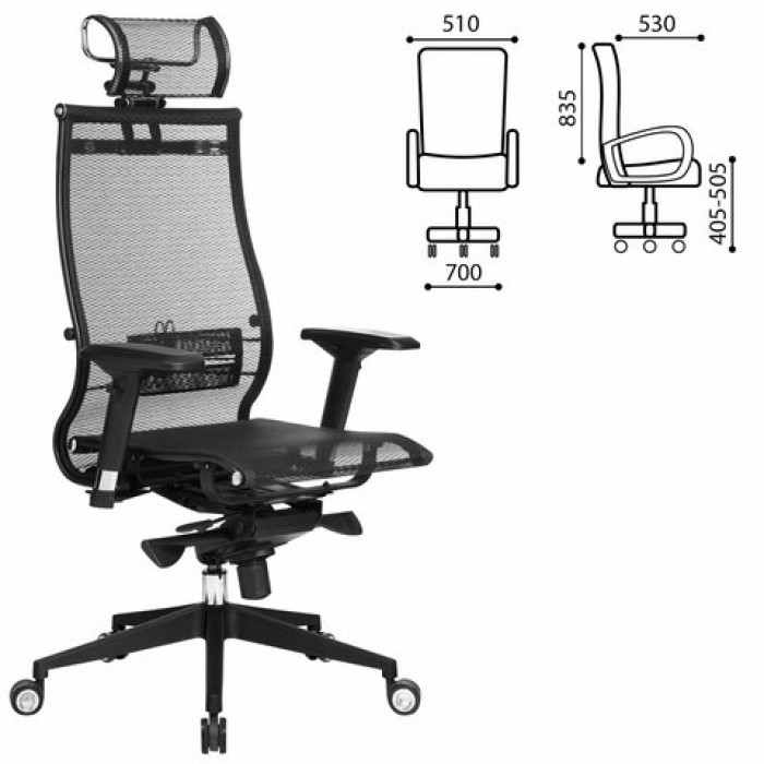 Кресло офисное МЕТТА "SAMURAI" Black Edition, сверхпрочная сетка, регулируемое, черное