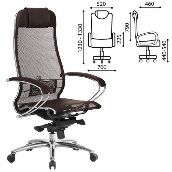 Кресло офисное МЕТТА "SAMURAI" S-1.04, сверхпрочная ткань-сетка, темно-коричневое