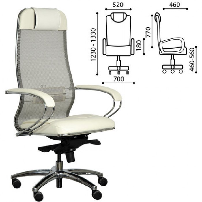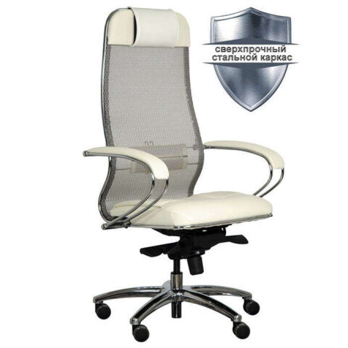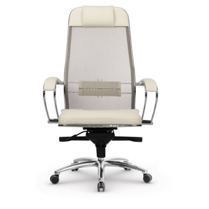 Кресло офисное МЕТТА "SAMURAI" SL-1.04, сверхпрочная ткань-сетка/экокожа, бежевое