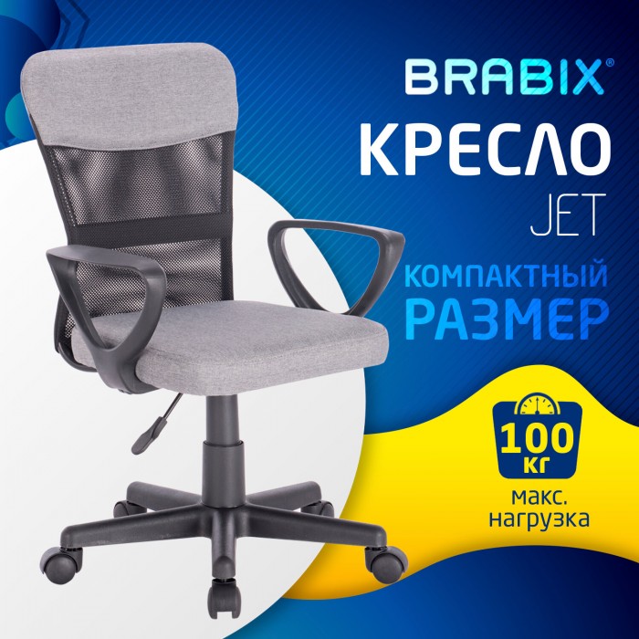 Кресло подростковое КОМПАКТНОЕ BRABIX "Jet MG-315", серое, 531840