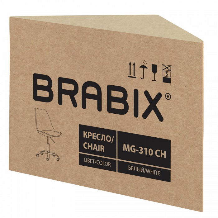 Кресло стул BRABIX "Eames MG-310 CH", хром, пластик белый, экокожа белая, 532923