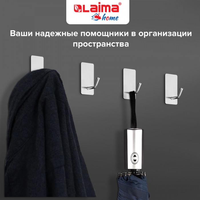 Крючки самоклеящиеся из нержавеющей стали LAIMA Home уберегут ваши стены от сверления. Подойдут для крепления на гладких, непористых поверхностях. Органично впишутся в любой интерьер и помогут организовать удобное хранение вещей.