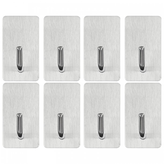 Крючки самоклеящиеся универсальные 2,5x4,5 см, КОМПЛЕКТ 8 шт., сталь, серебристые, LAIMA Home, 608789