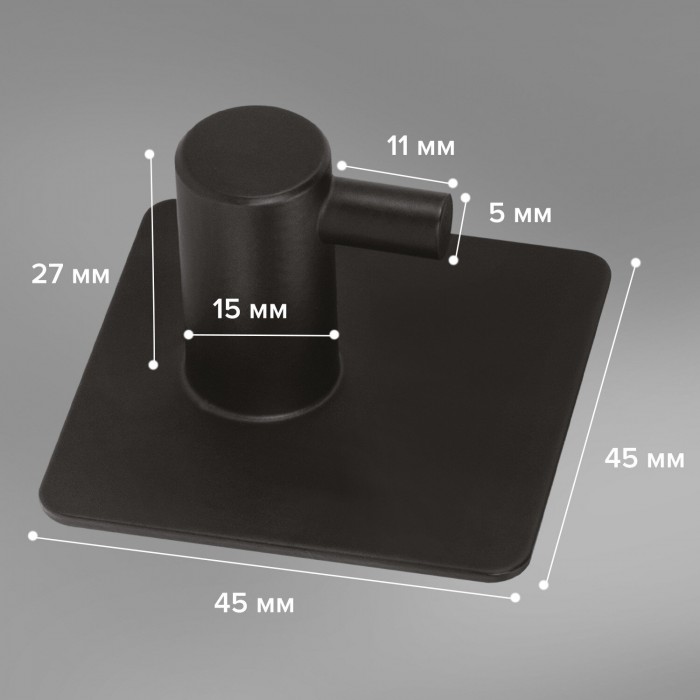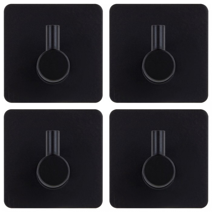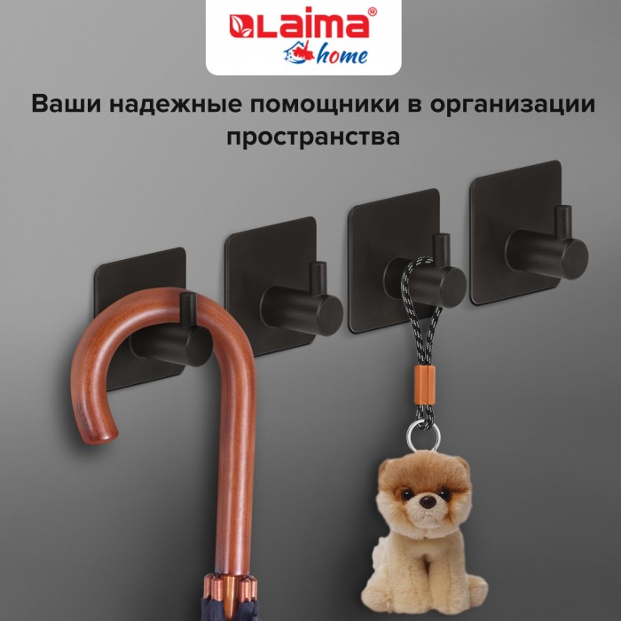 Крючки самоклеящиеся универсальные 4,5x4,5 см, КОМПЛЕКТ 4 шт., сталь, черные, LAIMA Home, 608786