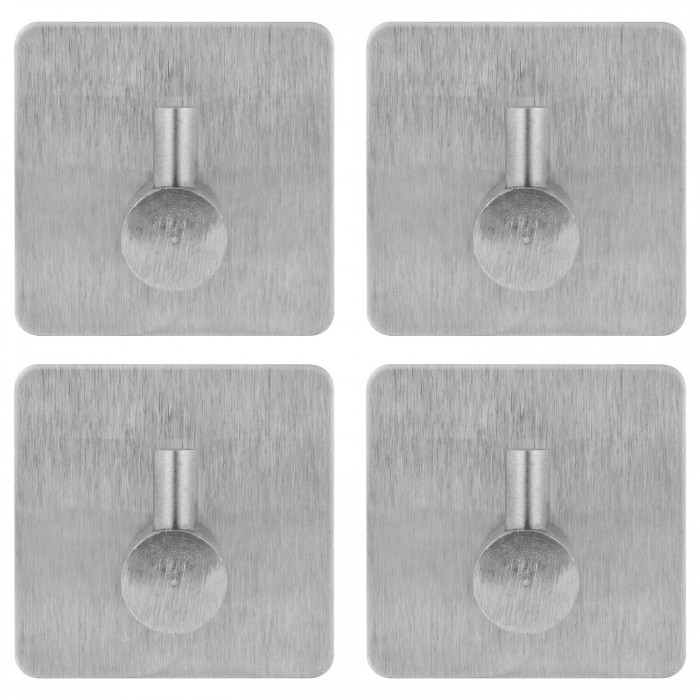 Крючки самоклеящиеся универсальные 4,5x4,5 см, КОМПЛЕКТ 4 шт., сталь, серебристые, LAIMA Home, 608785