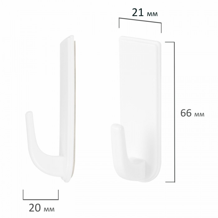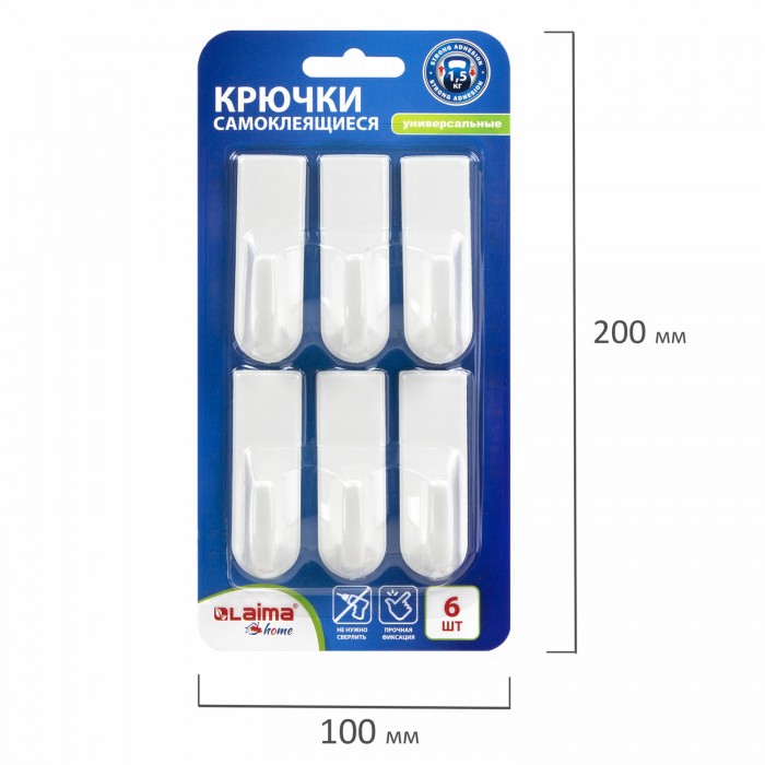 Крючки самоклеящиеся универсальные 6,6х2,1 см, КОМПЛЕКТ 6 шт., белые, LAIMA Home, 608793