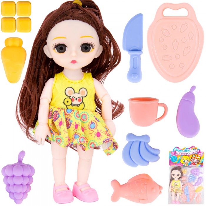 Размер упаковки: 17,5 х 3,5 х 25,5 см Размер изделия: 16 см Функционал: игрушки для девочек, куклы Вид упаковки: пакет с хедером Страна производитель: КНР Материал: пластик Комплектация: кукла - 1 шт, игровые аксессуары - 12 шт Возраст ребенка: для детей от 3 лет Невероятно красивая кукла обязательно порадует девочек. Особенности: - качественные и безопасные материалы - подвижные части - хорошая детализация - дополняющие аксессуары в комплекте