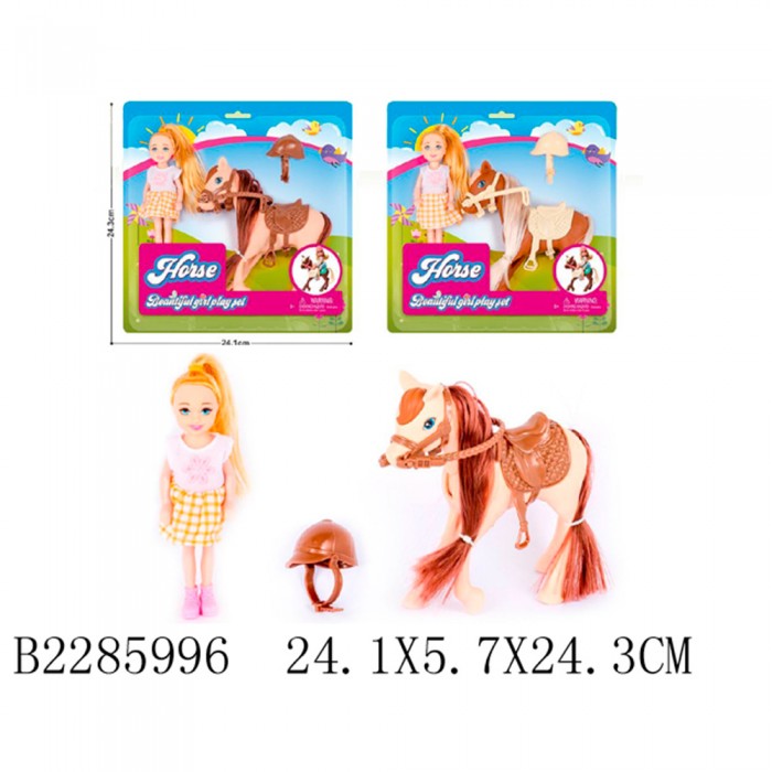 Размер упаковки: 24,1 х 5,7 х 24,3 см Функционал: игровой тематический набор Упаковка: блистер на картоне с подвесом Страна производитель: КНР Материал: пластик, текстиль Комплектация: кукла - 1 шт., комплект одежды и обуви - 1 шт., лошадь - 1 шт., шлем - 1 шт., седло - 1 шт. Возраст ребенка: от 3 лет Набор с аксессуарами по уходу за лошадью представляет очень хорошо детализированные и проработанные образы. Особенности: - реалистичный внешний вид; - набор уходовых аксессуаров в комплекте; - компактные размеры; - гриву лошади и волосы куклы можно причесывать и заплетать; - седло снимается; - прочный безопасный материал. Как использовать: - в качестве демонстрационного материала; - для сюжетных игр; - тематических коробок и занятий; - знакомство с жизнью лошадей и процессом груминга.. Такие игры: - расширяют словарный запас и кругозор; - дают сведения об окружающем мире.