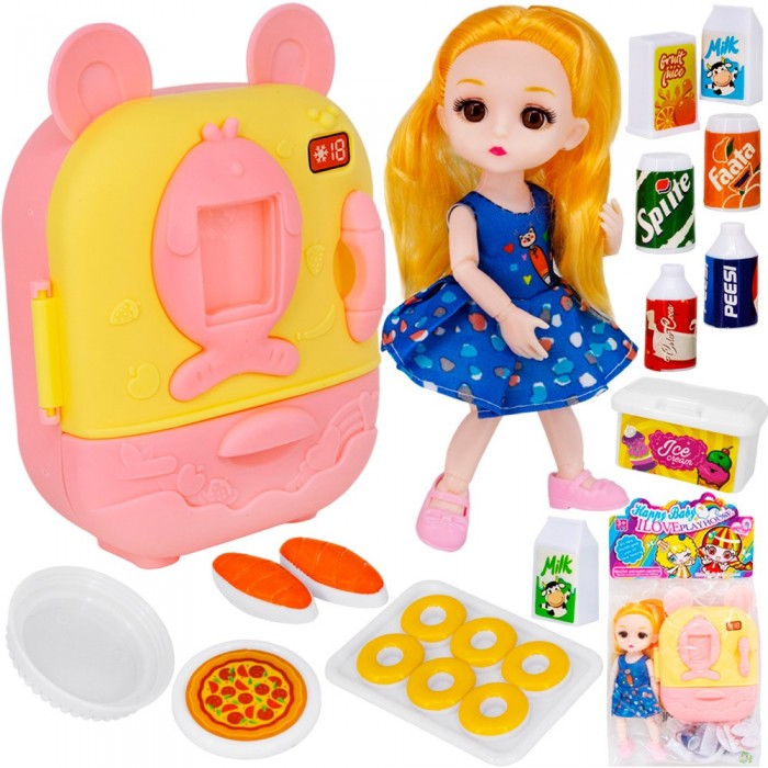 Кукла малышкас холодильником и набором продуктов в пакете