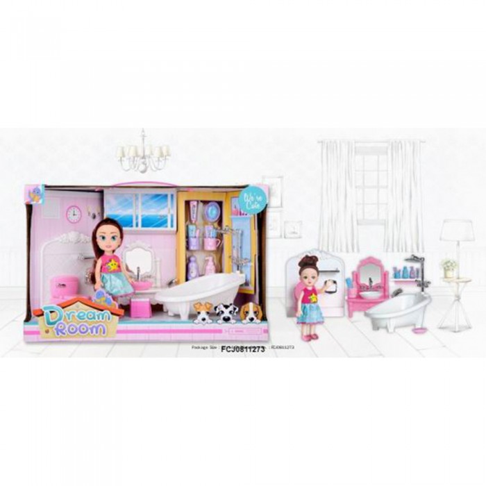 Кукла малышка в ванной комнате в коробке