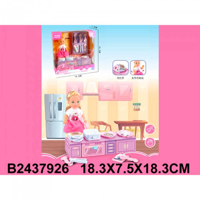 Размер упаковки: 18,3 х 7,5 х 18,4 см Размер изделия: кухня 16,2 х 5 х 5 см, плита 3,2 х 3,2 х 1,2 см, вафельница 3 х 4 х 1 см, разделочная доска 3,8 см, столовые приборы 4,2 см, морковь 3 см, пончик 1,4 см, звезда 2 см, тралека сердце 3,8 см, тарелка 3,5 см Высота куклы: 12 см Функционал: игрушка для девочек, куклы и аксессуары Вид упаковки: картонная коробка блистерного типа Страна производитель: КНР Материал: полимеры, текстиль Комплектация: кукла - 1 шт, кухня - 1 шт, плита - 1 шт, вафельница - 1 шт, разделочная доска - 1 шт, столовые приборы - 5 шт, морковь - 1 шт, пончик - 1 шт, звезда - 1 шт, тарелки - 2 шт Возраст ребенка: для детей от 3 лет Кукла поможет ребенку в развитии ролевых сценариев, и сделает игру увлекательной. Особенности: - кукла обладает подвижными частями тела - мягкие искусственные волосы, которые ребёнок сможет укладывать в различные причёски - картонная кухня - дополняющие игровые аксессуары - качественные и безопасные материалы