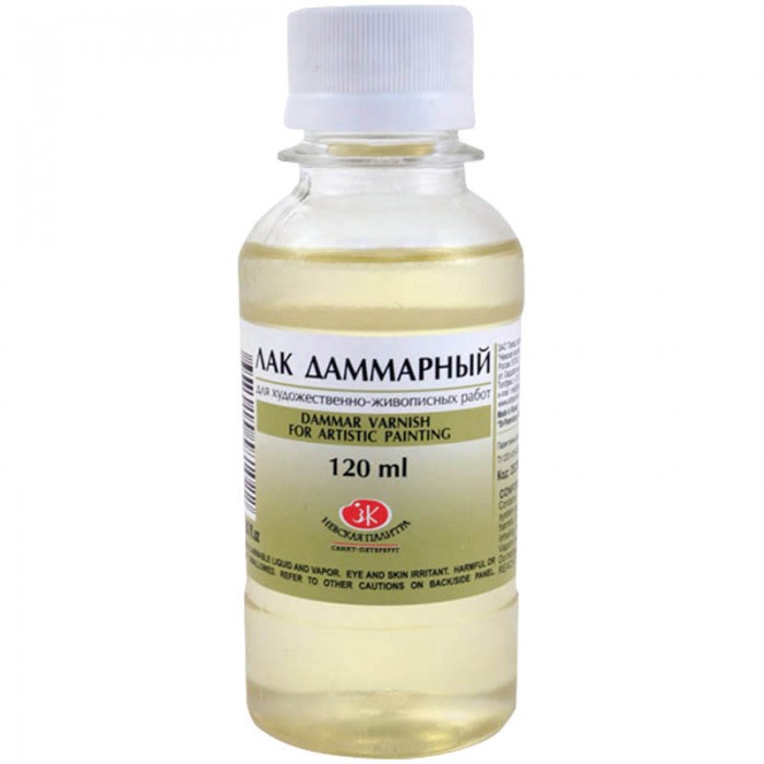 Применение: разведение масляных красок, пентамасляных и алкидных художественных красок, покрытие законченных произведений живописи. Состав: раствор смолы даммара в пинене или скипидаре. Свойства: пленка лака имеет обратимый характер, после высыхания легко растворяется в растворителе. Время высыхания 12 часов.