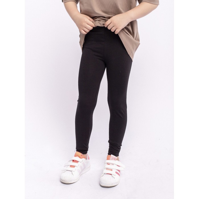 Леггинсы для девочки черные однотонные из супрема. Пояс на резинке.