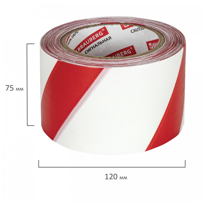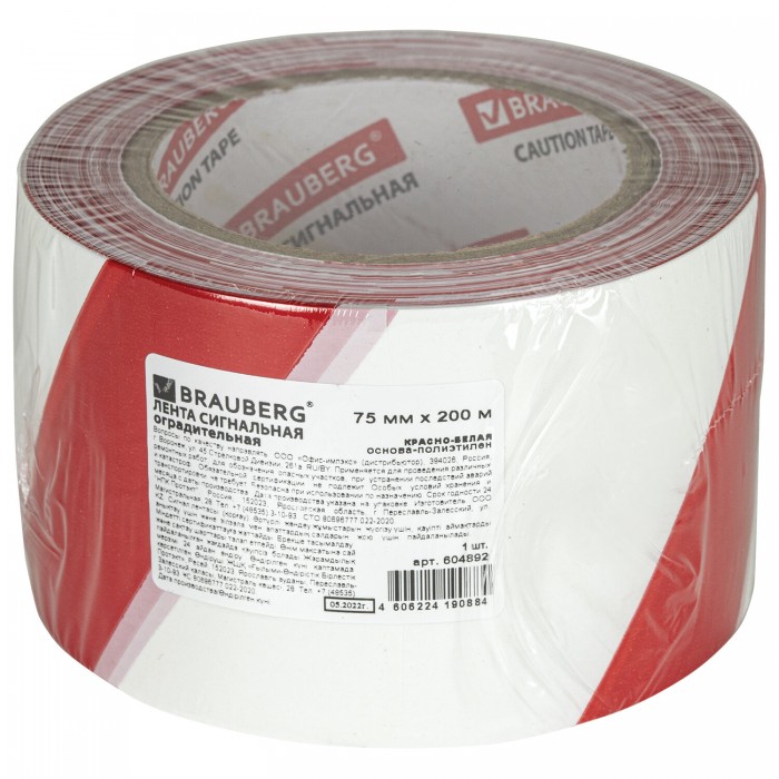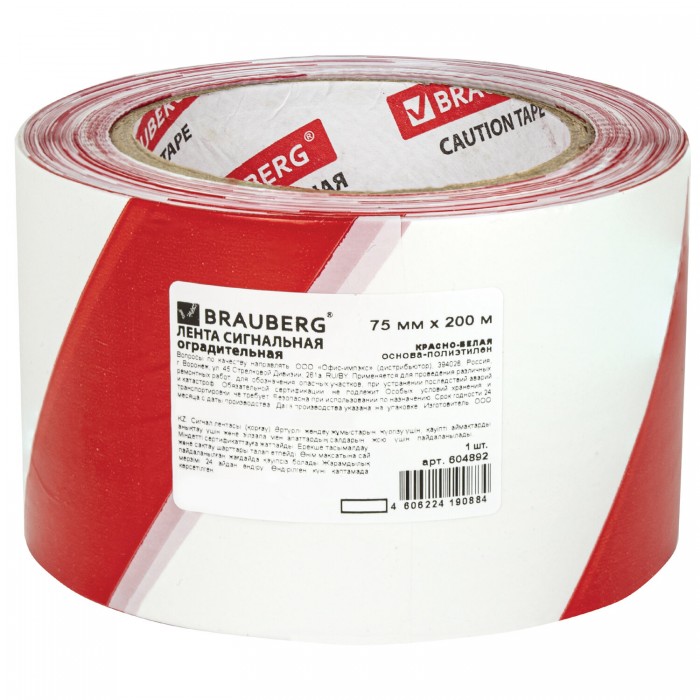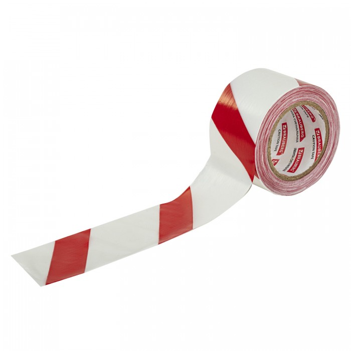 Лента оградительная сигнальная красно-белая, 75 мм х 200 м, BRAUBERG "Грандмастер", полиэтилен, 604892
