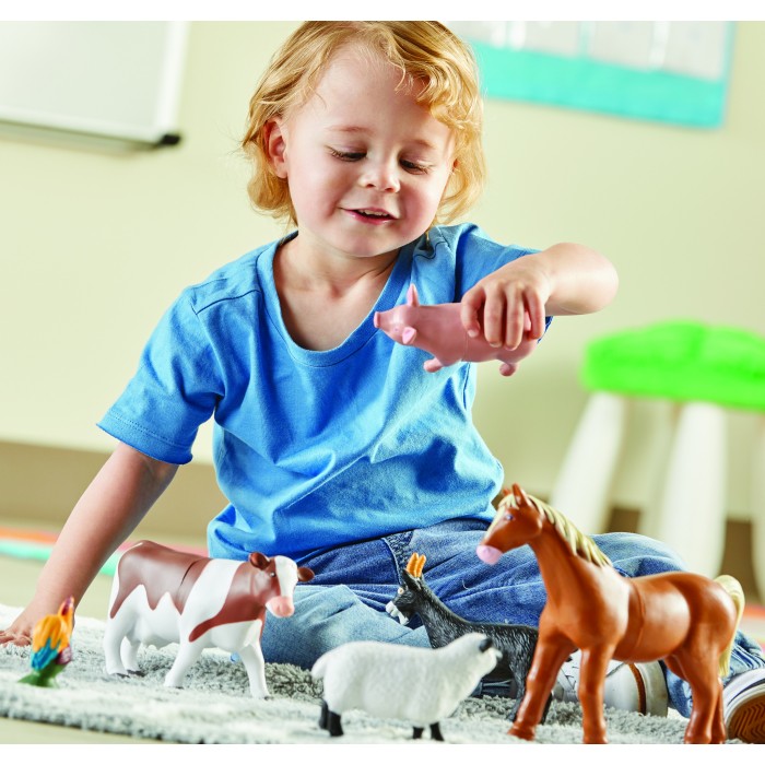 Играя с ними, малыши смогут понять, какие животные являются дикими, а какие — домашними. Так, например, с животными фермы малыши узнают, какие звуки издает корова или лошадь, сразу же попробуют воспроизвести их, что благотворно скажется на развитии речи.