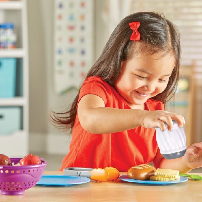 В наборе есть все, что нужно детям для приготовлеия обеда, включая фрикадельки, равиоли, лапшу, хлеб и сыр! Помимо продуктов набор также включает в себя все кухонные инструменты, необходимые для подачи еды, от тарелок и вилок до щипцов и ситечка для макарон! Придумайте разнообразные блюда, познакомьте с этикетом за столом, выучите кухонную лексику и многое другое !