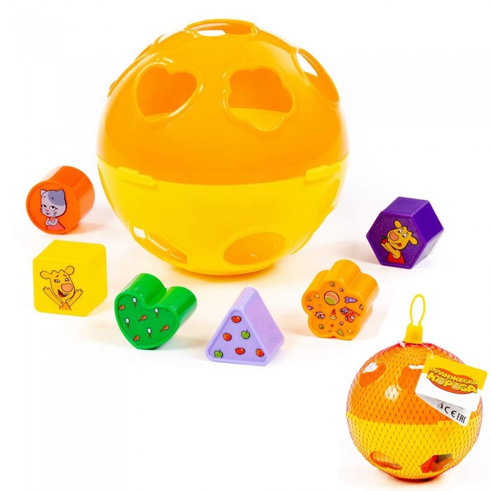 Размер упаковки: 15,5 х 15,5 х 14,1 см Вид упаковки: сетка Страна производитель: сетка Материал: пластик Комплектация: шар с отверстиями, 6 фигур (круг, квадрат, сердечко, треугольник, цветочек, многоугольник) Возраст: 1+ Развивающая игрушка «Шар. Оранжевая корова» подойдёт деткам от 1 года. В процессе игры ребёнок познакомится с различными геометрическими формами, а также разовьёт мелкую моторику, координацию движений и визуальное восприятие. Игрушка представляет собой шар с отверстиями разной формы, в которые нужно помещать соответствующие фигуры (входят в комплект). Фигурки легко достаются – необходимо просто раскрыть шар. Изготовлена игрушка из качественного, безопасного (без запаха) пластика.
