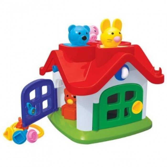Комплектация: домик - 1 шт., ключи - 4 шт., фигурки-вкладыши - 4 шт. Материал: пластик Размер упаковки: 19*19*16 см Функционал: интерактивная, логические задачи Возраст: от 1 года Упаковка: сетка Страна происхождения бренда: Беларусь Логический домик - это игра-сортер, которая поможет не только весело провести время, но и обучить малыша полезным навыкам: он получит представления о размере, форме, цвете, научится правильно подбирать фигурку под форму отверстия, манипулировать ключами, сопоставлять цвета. Таким образом малыш формирует свое первое представление о понятиях «форма» и «размер», а также улучшает цветовосприятие и логическое мышление. Элементы набора выполнены из прочного пластика, поэтому со временем не деформируются и не сохраняют форму. Домик и формочки окрашены стойкими красителями, поэтому на долгое время сохраняет яркие цвета и привлекательный внешний вид.
