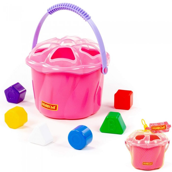 Логическая игрушка "Ведро Сюрприз" 6 элементов розовый в сеточке 93479
