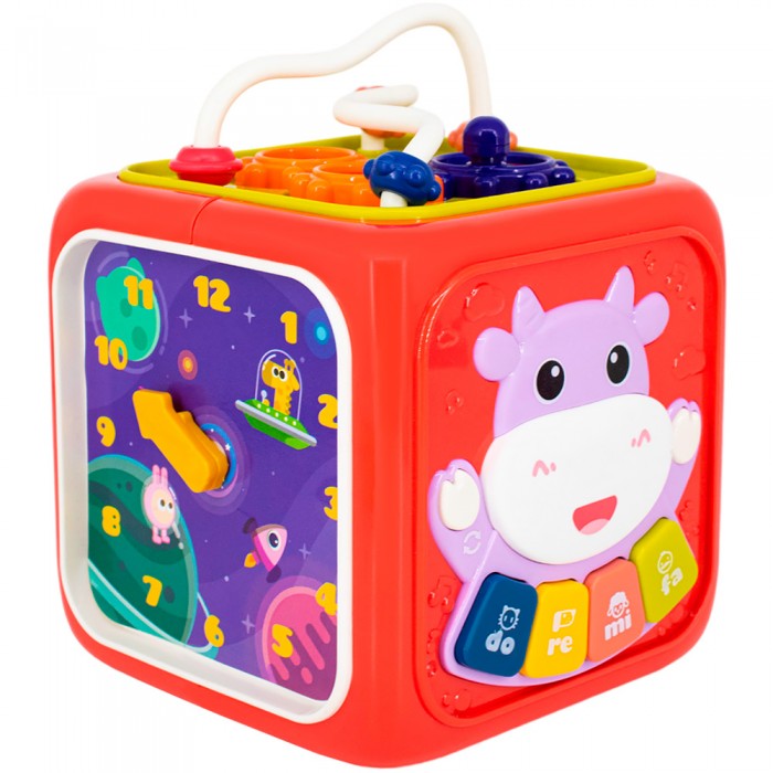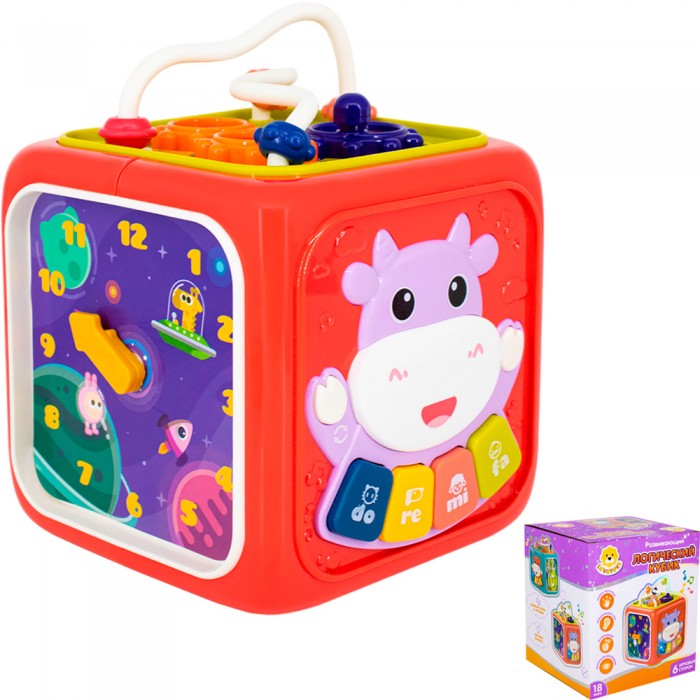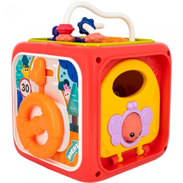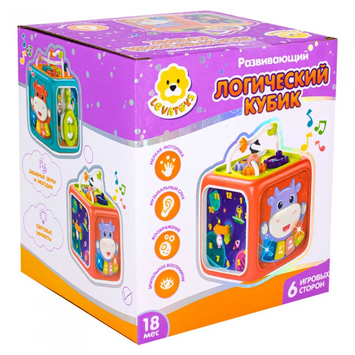 Размер упаковки: 14,4 х 13,6 х 16 см Размер изделия: 12 х 13 х 16 см Функционал: развивающая игрушка на батарейках Вид упаковки: картонная коробка Страна производитель: КНР Материал: полимеры Комплектация: развивающая игрушка - 1 шт, геометрические фигуры - 4 шт Возраст ребенка: для детей от 18 месяцев Игрушка бизиборд от ТМ Levatoys - это увлекательный интерактивный куб, который погрузит вашего малыша в мир увлекательного обучения. Играя ребенок развивает: - мелкую моторику - воображение - зрительное восприятие - слуховое восприятие Особенности: - музыкальное пианино, 6 режимов - дверца с пчелкой - лабиринт с шестеренками - часы с подвижными стрелками - руль с подвижной машинкой - сортер с геометрическими фигурами - фигуры разных цветов и форм с цифрами - 2 уровня громкости - световые и звуковые эффекты - 6 сторон - для работы игрушки необходимы 3 батареи АА 1.5 V (не входят в комплект)
