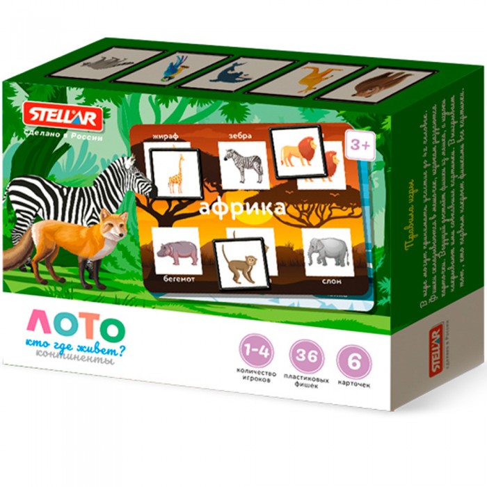Размер упаковки: 17*12*4 см Функционал: настольная игра Упаковка: картонная коробка Страна обладатель бренда: Россия Материал: картон, пластик, полиэтилен Комплектация: карточки - 6 шт., фишки - 36 шт., мешочек - 1 шт. Возраст ребенка: от 3 лет Лото понравится любознательному малышу. В ходе игры ребенок познакомится с разными животными. В игре могут принимать участие до 4 человек. Фишки складываются в мешочек, игрокам раздают карточки. Ведущий достает фишки из мешка, а игроки накрывают ими совпавшие картинки. Выигрывает тот, кто первым накроет фишками все картинки. Также красочные фишки можно использовать в качестве обучающего материала. Игра в лото не только позволит весело провести время, но и поможет познакомиться с новыми словами, а также развить внимательность, логическое мышление и мелкую моторику.
