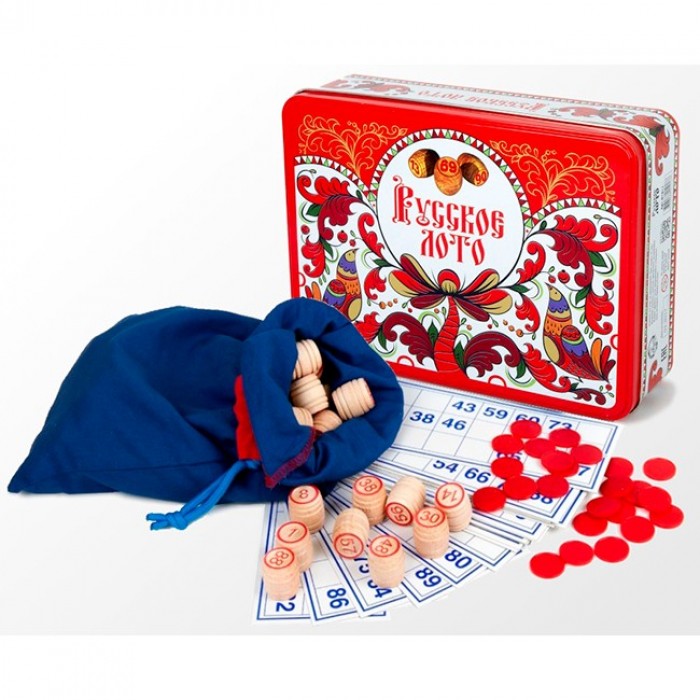 Возраст: от 7 лет Комплект: 90 деревянных бочонков, мешочек, 24 карточки, 150 пластиковых жетонов. Из чего сделана игрушка (состав): дерево, пластик, картон, текстиль. Размер упаковки: 22,5*6,5*16,5 см. Упаковка: жестяная коробка. Страна обладатель бренда: Россия. Настольная игра "Русское лото: Узоры" от производителя "Десятое королевство" поможет любой компании весело и интересно провести свой досуг. Суть лото достаточно проста: нужно расставить деревянные бочонки на игровые карточки согласно нумерации. Для этого перед началом игры участники выбирают карточки. Один из игроков перемешивает бочонки в мешке и, не глядя, вынимает их по одному. Тот, кто первым заполнит все поля карточки бочонками, становится победителем игры.