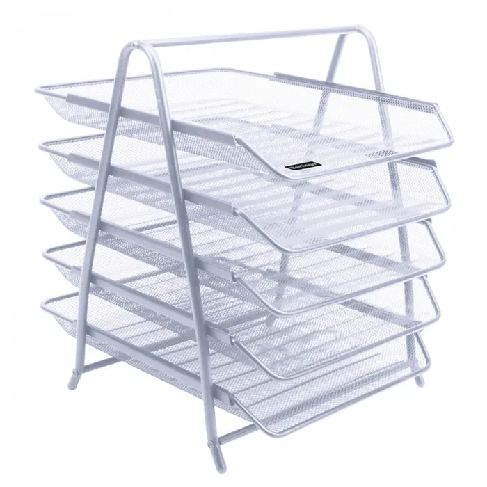 Стильный и практичный горизонтальный лоток с 5 секциями из высококачественного материала. Предназначен для удобного хранения бумажной продукции формата А4. Позволяет легко и эффективно организовать рабочее место. Лотки могут использоваться отдельно от опоры. Выдвижной механизм обеспечивает легкий доступ к содержимому лотков. Легкая и быстрая сборка. Серебристый цвет. Прочный корпус из высококачественного металла. Сетчатое исполнение предотвращает образование пыли внутри. Упаковка в картонную лакированную коробку.