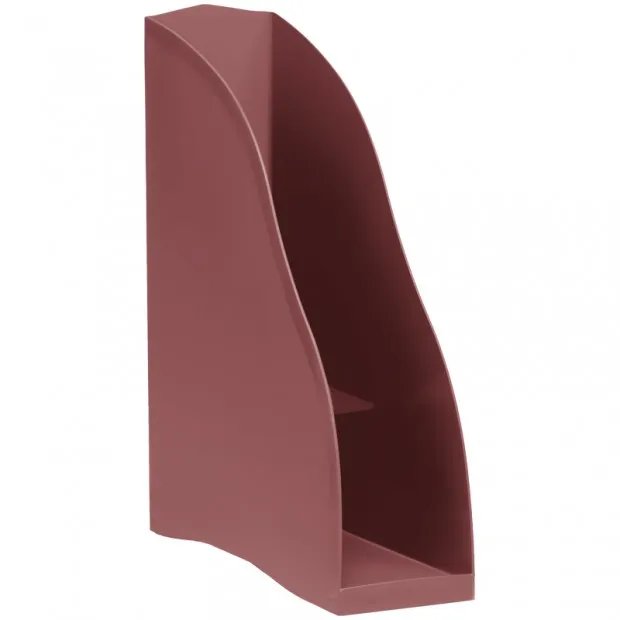 Лоток вертикальный для бумаг формата А4. Оригинальный дизайн, устойчивый, прочный корпус. Имеет комбинированную поверхность - глянцевую и матовую. На торцевой части предусмотрено отверстие для удобной переноски. Изготовлен из качественного полистирола. Цвет лотка - бордовый.