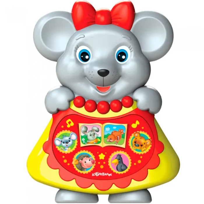 Комплектация: игрушка - 1 шт. Материал: пластик, металл Размер: 19*20*2,5 см Функционал: интерактивная, содежит звуковые элементы, песни, включение/выключение Возраст: от 12 месяцев Упаковка: картонная коробка блистерного типа с подвесом Страна происхождения бренда: Россия Оригинальная яркая игрушка со множеством кнопок предназначена для активных игр и развития мелкой моторики и координации движений. Современная интерактивная игрушка из серии "Любимая сказочка" выполнена в виде Мышки, персонажа русских народных сказок. Малыш сможет послушать сказки "Крылатый, мохнатый да масленый", "У страха глаза велики" и потешки: "Мышки", "Яблоки для мышки", "Сидит ворон на дубу", "У медведя во бору". Дополнительно: 15 интерактивных потешек и 5 сказок – теперь в вашем смартфоне и планшете. Отсканируйте QR-код на упаковке и получите подарок в приложении "Азбукварик". Яркая расцветка развлечет малыша и привлечет его внимание. Игрушка учит пониманию причинно-следственной связи, помогает тренировать моторику и коорд
