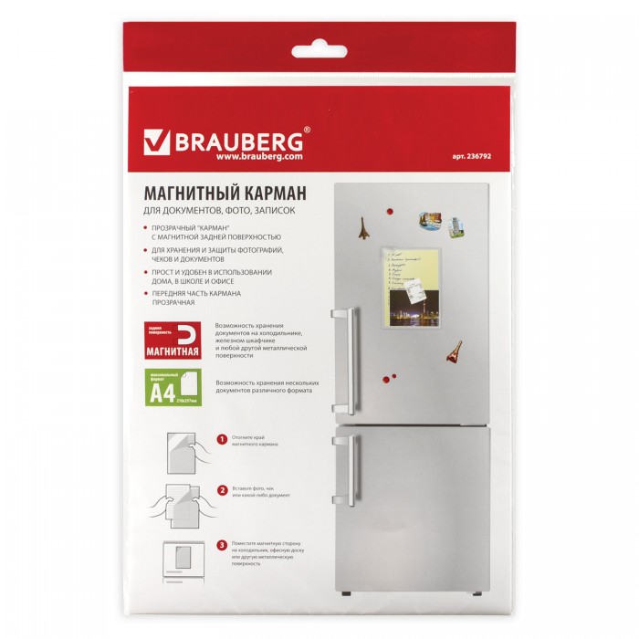 Магнитный карман BRAUBERG формата А4 предназначен для хранения и защиты документов на любых металлических поверхностях. Ваш маленький помощник для наглядного хранения информации в легкой доступности.