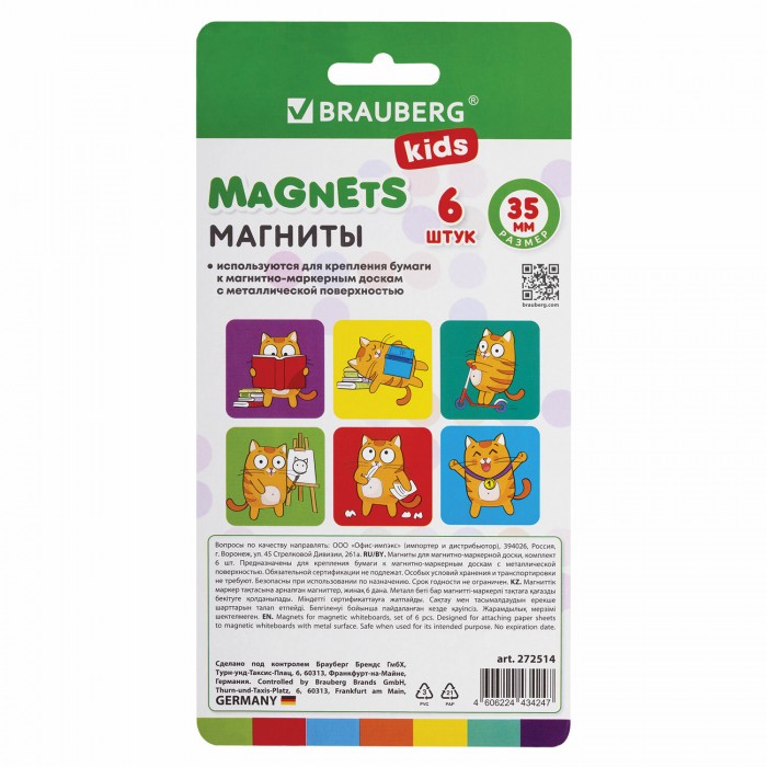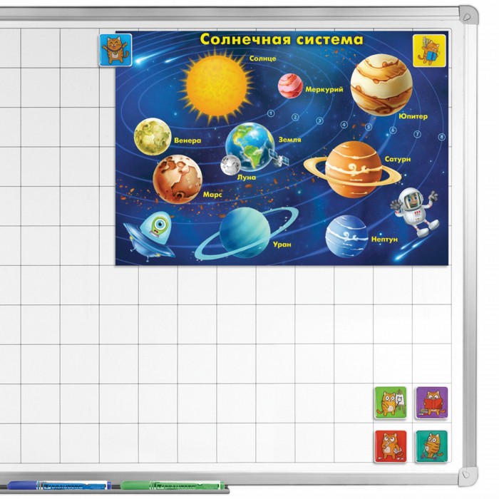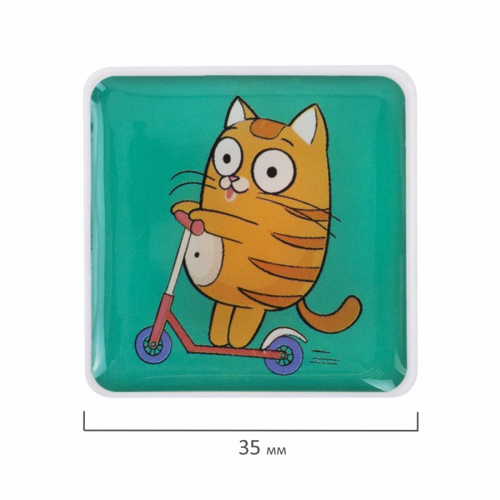 Квадратные стеклянные магниты BRAUBERG KIDS с ярким дизайном "Кот-энтузиаст" надежно прикрепляют листы бумаги к магнитно-маркерной поверхности досок, витрин, флипчартов и холодильников.