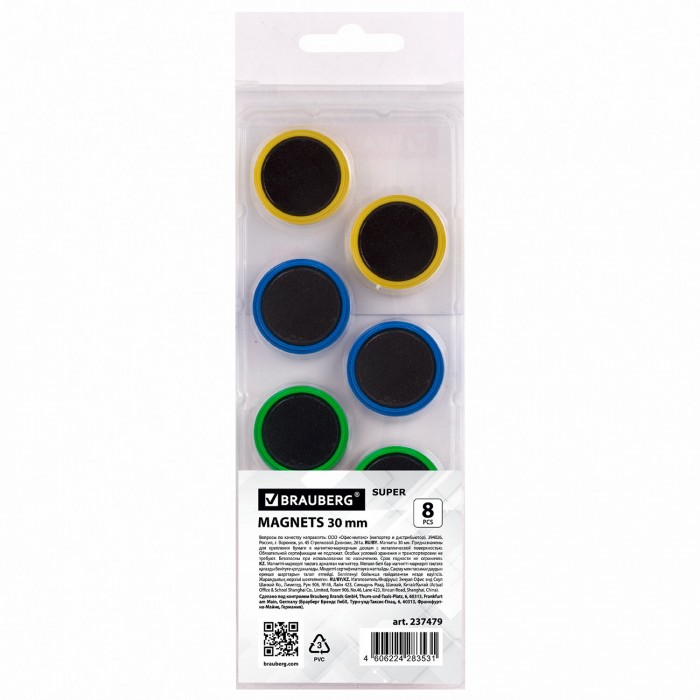 Сильные магниты BRAUBERG "SUPER" предназначены для фиксации и удержания на магнитных досках и металлических поверхностях полиграфической продукции (объявлений, распоряжений, вывесок, постеров, приказов, макетов).