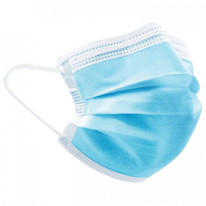 Маска медицинская одноразовая, КОМПЛЕКТ 100 шт., короб, 3-х слойный фильтр СМС, голубая, ГЕКСА