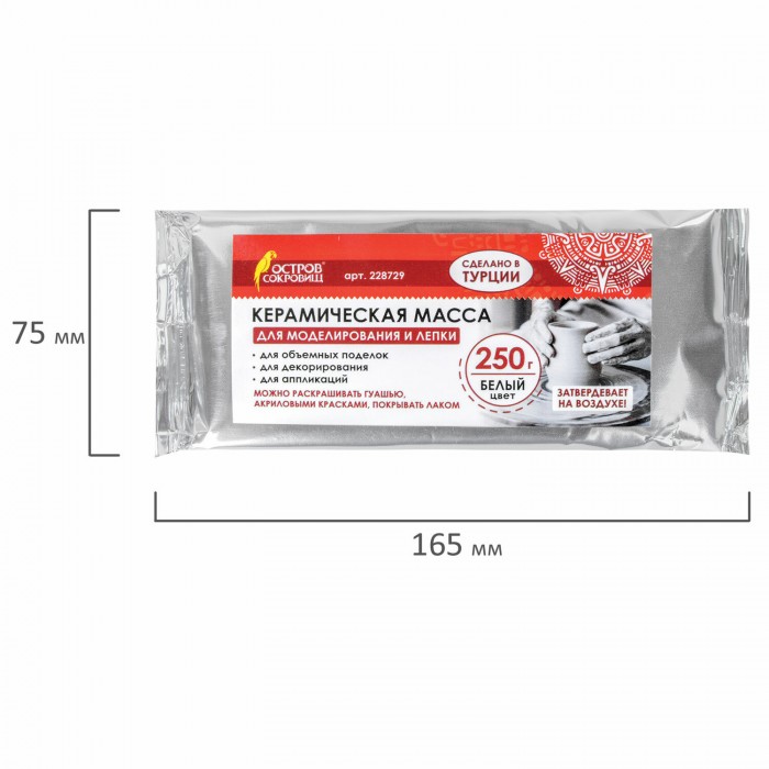 Керамическая масса ОСТРОВ СОКРОВИЩ предназначена для моделирования, лепки, декорирования и создания объемных аппликаций. Самостоятельно затвердевает на воздухе, не требуя термической обработки.