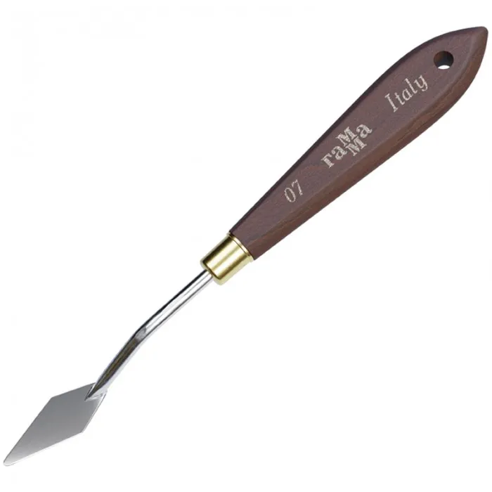 Мастихины серии «Старый Мастер» изготовлены вручную в Италии. Лезвие из нержавеющей стали прочное и упругое. Лезвие имеет специальное глянцевое покрытие для долговечной службы. Эргономичная ручка из натурального бука отполирована вручную и оснащена отверстием для хранения на подвесе. Бесшовная обойма гарантирует надежное соединение лезвия и ручки. Коллекция мастихинов представлена в 12 самых популярных видах лезвий: ромб, капля, «рыбка», овальное, прямоугольные.