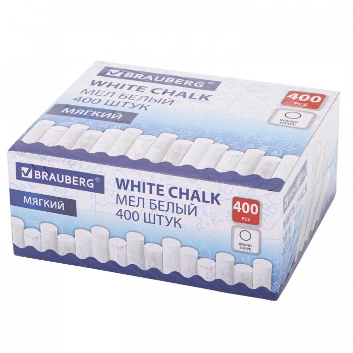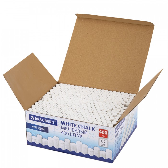 Мел белый круглый мягкий, 400 штук, BRAUBERG, картонная упаковка, 272770