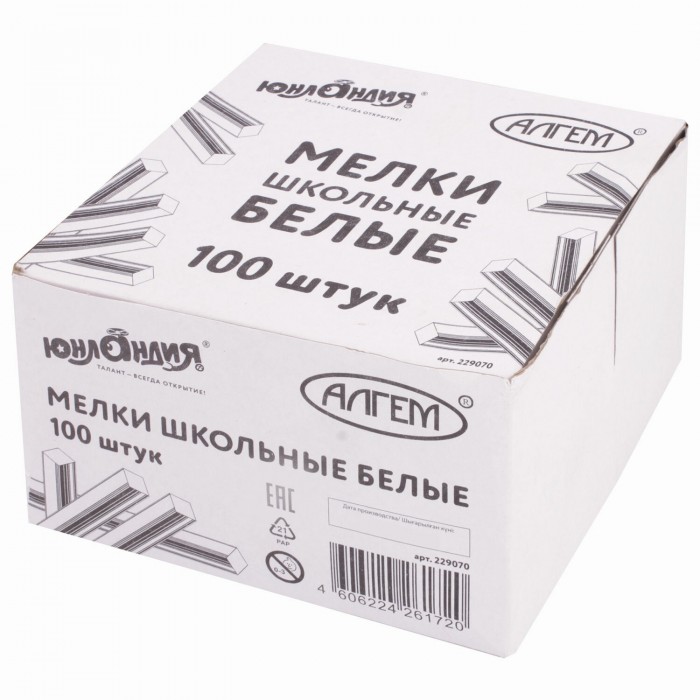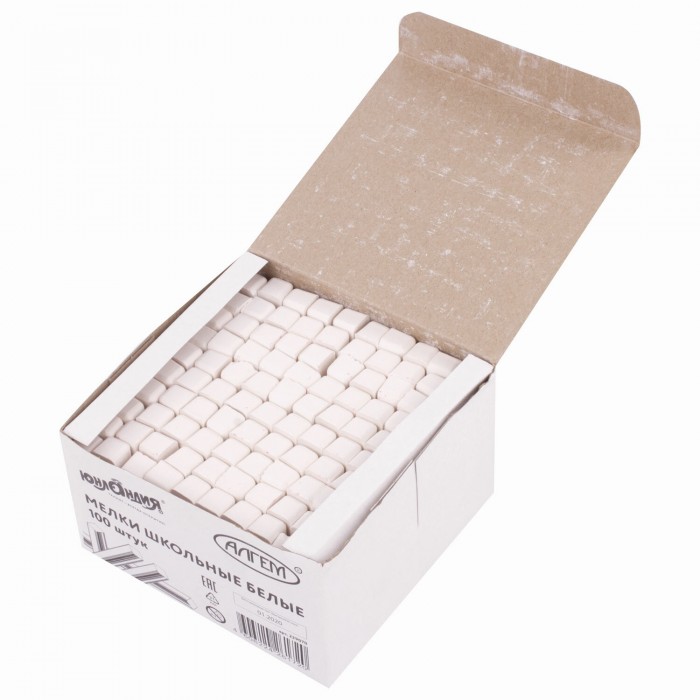 Мел белый квадратный 100 штук, ЮНЛАНДИЯ (Алгем), картонная упаковка, 229070