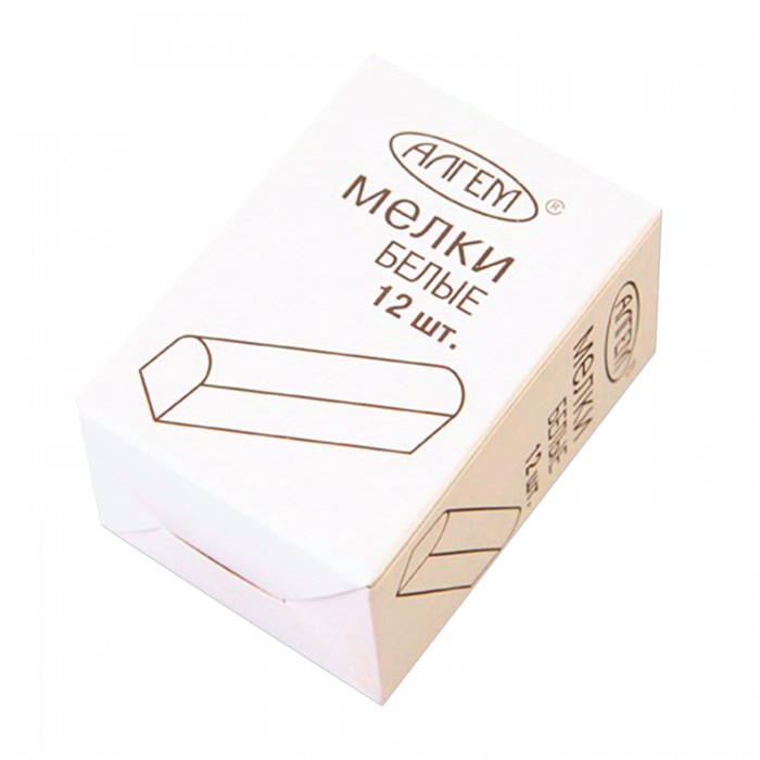 Мел белый квадратный 12 штук, АЛГЕМ, картонная упаковка, НМБ-12