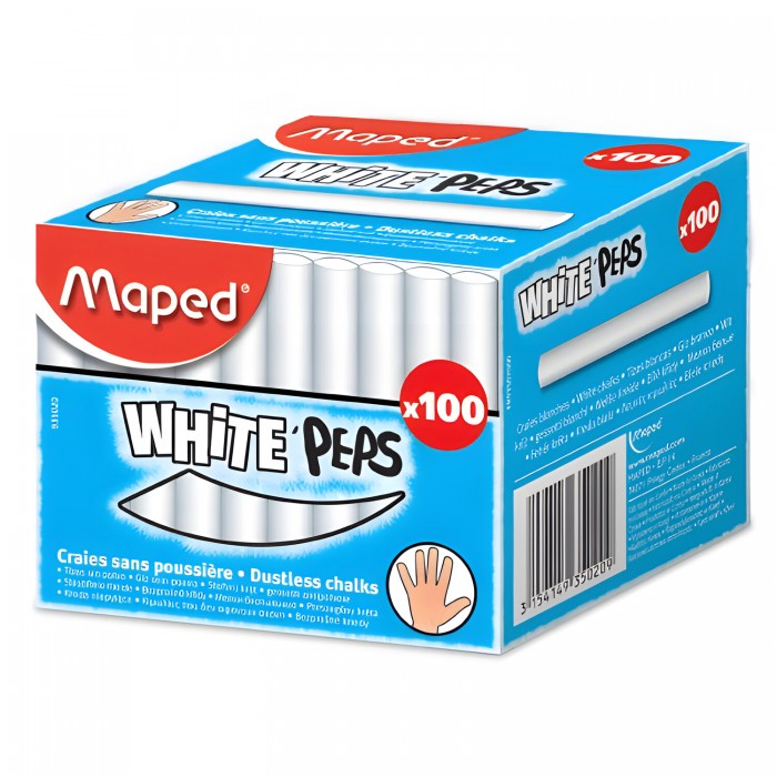 Мел белый MAPED (Франция) "White'Peps", АНТИПЫЛЬ, НАБОР 100 шт., круглый, 935020