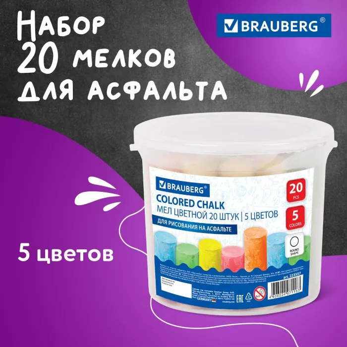 Цветной мел BRAUBERG предназначен для письма и рисования на асфальте.